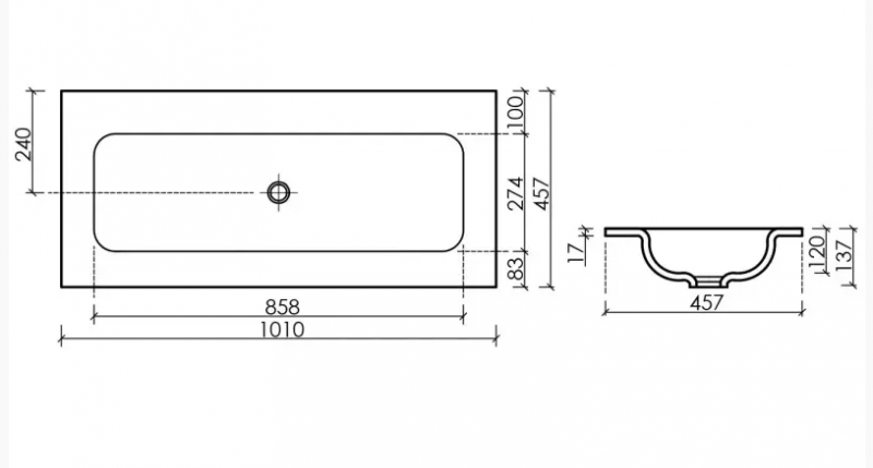 Раковина Ceramica Nova Element CN7013 встраиваемая сверху 101х45,7 см, белый глянцевый