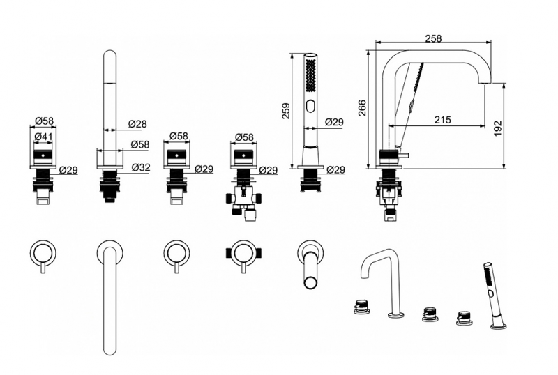 Cмеситель на борт ванны, 5.31007-31 PRIORITY излив 190мм, Kerox, скрыт.часть, черн.мат (265368) Allen Brau
